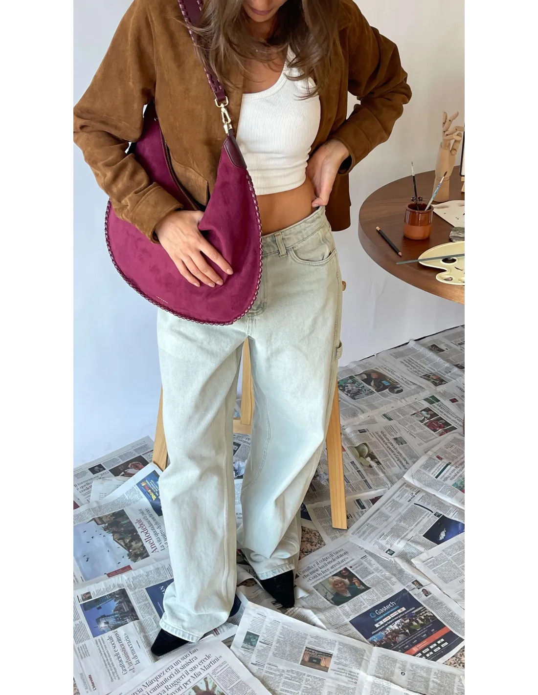 Elegante e versatile, la borsa Aurora è realizzata in doppio tessuto: simil camoscio e PU liscio, per un look sofisticato e contemporaneo. Il manico in PU con moschettoni è arricchito da un raffinato dettaglio intrecciato laterale, che richiama il fondo della borsa anch’esso intrecciato. Pratica chiusura con zip e interno capiente con unico scomparto dotato di due taschine, di cui una con chiusura a zip. Perfetta per accompagnarti con stile ogni giorno.